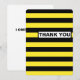 Bold black and yellow horizontal striped geometric design thank you card. The colours of the stripes can be changed within the Design tool. The text can be personalized as well. Please be mindful of area limitations. Make your appreciation and gratitude standout aesthetically and confidently. © 2026 Aleatha Cox.
