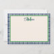 This monogrammed note card features a blue and cream gingham plaid tartan with an accent of green. Personalize the matching blue and green monogram with your choice of name and initial.