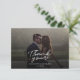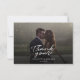 Una manera grandiosa y reflexiva de agradecer a tus amigos, familia y compañeros de trabajo que te honraron su presencia en tu día de boda con esta moderna foto gracias a las cartas con la mano de guion con "gracias" y un corazón de amor.