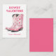 Envía amor al estilo Western con esta adorable tarjeta "Howdy Valentine" que presenta encantosas botas de vaquero rosadas adornadas con corazones. Perfecta para vaqueros, vaqueras y amantes del campo, esta tarjeta es totalmente personalizable – personalízala con tu nombre o mensaje. Ideal para regalos del Día de San Valentín en la escuela, notas románticas entre amigos o saludos divertidos para fiestas en el salón de clase. ¡Crea un recuerdo memorable y único que atesorarán para siempre!