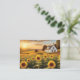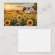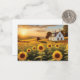 Una casa de campo blanca se encuentra en una colina con vistas a un amplio campo de girasoles al atardecer, con colinas onduladas en el fondo, creando una cálida e idílica escena rural con un ambiente tranquilo.