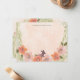 Envíe una nota de agradecimiento o simplemente salude con estas preciosas tarjetas personalizadas de papel de papel con un ciervo de bosque dulce, flores de melocotón y rosa y un fondo de color melocotón. Diseño de The Spoted Olive; © 2020-Present | El olivo visto | Todos los derechos reservados.