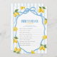 Este divertido juego trivial de 1 cumpleaños combina la elegancia clásica de los elementos acuarelas con los doodles dibujados a mano, siempre a la moda. Con limones acuarelas, rayas azules y arcos.