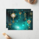 Tarjeta Pequeña Claves de esqueleto antiguas sobre fondo verde