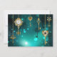Tarjeta Pequeña Claves de esqueleto antiguas sobre fondo verde