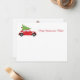 Tarjetas con coche rojo antiguo y árbol de Navidad. Personaliza con tu propio mensaje o nombre. Vienen con sobres blancos estándar.