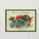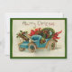 Tarjeta Pequeña Cochecito azul vintage de Navidad
