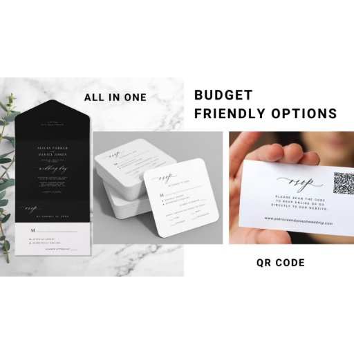 Tarjeta Pequeña código QR simple boda en blanco y negro RSVP