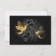 Colibríes con joyas negras y doradas sobre un fondo gris adornado con plantas. Aves de joyas. Ave dorada. Ave dorada.