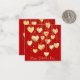 Personaliza estas adorables tarjetas de corazones de oro colgando de una cuerda para el Día de San Valentín en el aula para las festividades del Día de San Valentín en la escuela. Agrega tu saludo especial tanto en el frente como en el reverso de estas tarjetas escolares del día del amor. Los corazones de oro parecen colgar de la parte superior de la tarjeta de nota de una cuerda dorada. Algunos corazones de oro tienen un delicado remolino rojo para darle un toque extra. El fondo es un rojo Cornell brillante y audaz. ¡Disfruta! Diseñado por mw1deisgnsart.