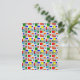 Esta tarjeta de nota tiene un diseño Bauhaus de una cuadrícula con cuadrados y rectángulos en rojo, verde, azul, naranja, azul claro, amarillo y rojo.