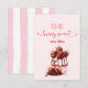 Tarjeta de nota Cupcake Fantasía de Rayas Dulce Fruta Día de San Valentín. Cupcake caprichoso de chocolate con fresas "Eres dulce como una fruta" tarjeta del día de San Valentín. Texto escrito a mano y rayas de acuarela rosa en el reverso de la invitación.
