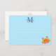 Tarjeta Pequeña Cute Cartoon Crab Blue Ocean Lined Monogram