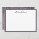 Nuestras tarjetas planas personalizadas de papel de moda cuentan con un borde oscuro de berenjenas con su nombre o monograma en la parte superior en letras de guiones. Al revés se ve una moderna impresión de damasco de berenjena oscura.