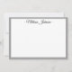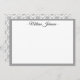 Nuestras tarjetas planas personalizadas de papel de moda cuentan con un suave borde gris con su nombre o monograma en la parte superior de la letra del guión. Al revés se ve una moderna impresión de damasco gris suave.
