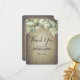 Tarjetas pequeñas de agradecimiento para despedida de soltera con follaje de acuarela y fondo de madera rústica