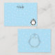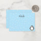 Un dibujo de pingüino blanco y negro. Tarjetas de notas de animales bebés con monograma. Fondo de nieve y azul. Edite la inicial y el monograma para personalizar. Idea de regalo para niños.