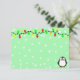 Un dibujo de pingüino negro y blanco lindo. Tarjetas de notas en blanco de animales bebés. Versión temática de vacaciones verdes con nieve. Idea de regalo para niños.