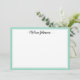Nuestras tarjetas planas personalizadas de papel de moda cuentan con un suave borde verde con su nombre o monograma en la parte superior de la letra del guión. El lado inverso revela un patrón de damasco verde suave.