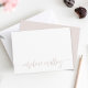 Nuestras tarjetas planas personalizadas de papelería de moda incluyen su nombre o elección de personalización a lo largo de la parte inferior en apenas ahí el guión con letras de color rosa y polvoriento con toques decorativos.
