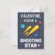 Esta genial tarjeta El día de San Valentín presenta tres estrellas fugaces en el espacio con las palabras "Valentine, eres una estrella fugaz". Estrellas, la Tierra y otros dos planetas están en el fondo, y un corazón rosado flota en la esquina inferior derecha. Esta tarjeta es excelente para los niños que necesitan traer San Valentín al aula. La parte posterior incluye texto de personalizable en el que puede agregar el nombre de su hijo. Consulte la colección para ver otras cuatro tarjetas de clase con temas espaciales.