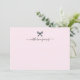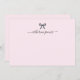 Esta es una elegante tarjeta de nota ondulada rosa rosa en un elegante guión de nombre monograma con un lindo diseño de arco de cinta negra.