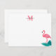 Elegante Monograma Volantes Tropicales Tarjeta de Nota Flamingo Rosa Caliente
