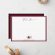 Elegante ramo floral de color azul y burdeos, borde rojo burdeos de color sólido y respaldo, tarjeta de nota personalizada. La tarjeta muestra la caligrafía negra "Gracias" en la parte superior. Línea de texto de plantilla en la parte inferior para su nombre.