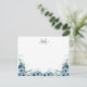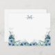 Elegante Script Floral Dusty Blue Monograma Tarjeta de Nota