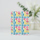 Esta tarjeta de nota tiene un diseño moderno de mediados de siglo de rectángulos redondeados, algunos de los cuales están unidos y algunos tienen estriberas, en colores retro de rojo, oro, verde y turquesa. Añade tu propio mensaje personal en la parte posterior. Si te gusta el diseño pero prefieres colores diferentes, envíame un mensaje.