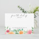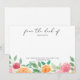 Una bonita tarjeta con una hermosa cenefa inferior de flores de acuarela en naranja y rosa, con hojas verdes, con "de parte de" en fuente de estilo caligráfico moderno en negro, y personalizada con tu nombre. Se añade el popular versículo bíblico "El Señor te bendiga y te guarde" Números 6:24, que puedes editar. Esta tarjeta es perfecta para enviar una nota de ánimo, o ¿por qué no comprar un conjunto como regalo para tu madre, amiga, esposa del pastor o cualquier otro adicto a la papelería?