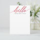 Esta moderna tarjeta plana de notas incluye el guión caligráfico "hola" en una preciosa acuarela rosa con su nombre a continuación. com