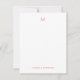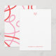 Papel minimalista personalizado con un moderno diseño de monograma, perfecto para correspondencia profesional o notas personales sofisticadas. El frontal presenta un fondo blanco limpio con un monograma inicial en la parte superior y un nombre que se muestra en la parte inferior con una elegante letra en serif roja, creando un diseño refinado y contemporáneo. El reverso muestra un sorprendente patrón de giro abstracto en rojo y rosa negrita, añadiendo un contraste artístico moderno que eleva la singularidad del diseño. Ideal para profesionales de negocios, escritores o cualquier persona que valore la elegante papelería personalizado con un toque limpio y artístico.