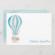 Nuestras adorables tarjetas planas personalizadas cuentan con un globo de aire con acuarela azul y blanco adornado con ramos de flores rosadas, rubor y amarillas. Personalice el diseño de fondo de globo de aire caliente añadiendo su nombre o texto personalizado en un guión azul elegante. Las tarjetas de nota se revertirán a un fondo de color azul claro. Las tarjetas de globo aerostático son perfectas para escribir notas y tarjetas de agradecimiento a los invitados de la fiesta de cumpleaños o la ducha de bebé. Diseñado para coordinar con nuestra colección de niños de Watercolor Hot Air Balloon.