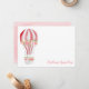 Nuestras adorables tarjetas planas personalizadas cuentan con un globo de aire color rosa y blanco oscuro adornado con ramos de flores rosadas, rubíes y amarillas. Personalice el diseño de fondo de globo de aire caliente agregando su nombre o texto personalizado en un guión rosa elegante. Las tarjetas de notas se invierten a un fondo de color de agua rosa claro. Las tarjetas de globo aerostático son perfectas para escribir notas y tarjetas de agradecimiento a los invitados de la fiesta de cumpleaños o la ducha de bebé. Diseñado para coordinar con nuestra colección de niños de Watercolor Hot Air Balloon.