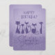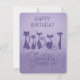 Tarjeta Pequeña Feliz cumpleaños, gato alto, morado, espárragos
