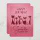 Tarjeta Pequeña Feliz cumpleaños, gato alto, paracaidas rosadas os