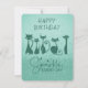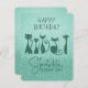 Tarjeta Pequeña Feliz cumpleaños, gato alto, Verde azuladas espárr