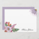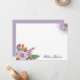 Nuestras tarjetas planas personalizadas de papel de moda cuentan con un suave borde floral con su nombre o monograma en la parte inferior en letras de guiones. El lado inverso revela un sólido fondo morado suave.
