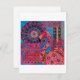Flamingo floral rosa y fushia contra una mandala marrón, azul y rosa.