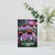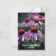 Hermosa equinácea morada o colmenillas. La fotografía fue tomada a principios de la primavera en los jardines RHS Wisley. Tarjeta de invitación de cumpleaños con información de invitación en la parte posterior. Guarda la fecha, la fecha, el evento de cumpleaños, el nombre de la persona de cumpleaños, el lugar y la hora del evento.