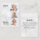 Moderna Simpatía De Mármol Blanco 3 Foto Funeral Gracias Cartas. Estas tarjetas funerarias de simpatía incluyen un collage de fotos único para 3 de tus fotos, nombres y fechas favoritos, en un moderno diseño de mármol blanco. Personaliza tu mensaje de agradecimiento. Estas tarjetas de simpatía conmemorativas son perfectas para tarjetas de agradecimiento funerarias, o celebración de tarjetas de agradecimiento de vida. DERECHOS RESERVADOS © 2020 Judy Burrows, Black Dog Art - Todos los derechos reservados. Tarjeta de nota de agradecimiento del funeral de fotos conmemorativas del presupuesto