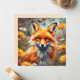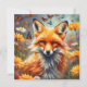 Ein hübscher kleiner Fuchs schaut dich an. Er sitzt zwischen Blumen und spielte mit Schmetterlingen.