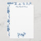 La histórica adaptación sin fisuras de un patrón textil John Munn inglés grabado en tela de jouy de los años 1770 con un monumento clásico a Shakespeare, fuentes, aves y flores exóticas. Azul sobre fondo blanco. Incluye campo de texto editable y gráfico floral.