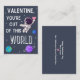 Esta genial tarjeta El día de San Valentín muestra a un astronauta en el espacio con las palabras "Valentine, estás fuera de este mundo". Estrellas, la Tierra y otros dos planetas están en el fondo, y un corazón rosado se sostiene en la mano del astronauta. Esta tarjeta es excelente para los niños que necesitan traer San Valentín al aula. La parte posterior incluye texto de personalizable en el que puede agregar el nombre de su hijo. Consulte la colección para ver otras cuatro tarjetas de clase con temas espaciales.
