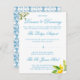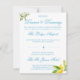 Captura la esencia de una celebración mediterránea con bellos de sol con nuestra exquisita suite boda, diseñada para transportar a sus invitados a un mundo de belleza y encanto intemporal. Esta tarjeta de gabinete RSVP/Response presenta un asombroso arreglo de limones vibrantes, que simbolizan amor y prosperidad, entremezclados con exuberantes hojas verdes. Invite a sus seres queridos a que se unan a usted para celebrar su unión con una invitación de boda que encarna el espíritu del Mediterráneo - vibrante, elegante e inolvidable. Esta tarjeta de información detallada es una buena manera de informar a sus huéspedes sobre el orden del día y, quizás, dónde pueden acceder al alojamiento.