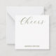 Tarjeta de notas con papel personalizado con un patrón de gingham verde en notas de salvia de bosque profundo y verde de jardín de olivos con las palabras sentimentales "Cheers". Deslízala en un ramo de flores o un regalo significativo. Estas tarjetas de inclusión inspiradas en floristería minimalista traen un ambiente retro de cocina a tus momentos más reflexivos.