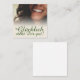 ¡Glücklich steht Dir gut! Kompliment Karte mit lachendem Frauengesicht und handschriftlichen Grüßen auf der Vorderseite der Karte. Restliche Flächen stehen zur freien Verfügung.