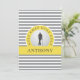 Este diseño personalizado incluye una silueta de golfista masculino sobre una imagen realista de bola de golf. La pelota de golf está colocada en un círculo amarillo que bordea con curvo el texto "GOLF GOLF GOLF GOLF GOLF" en letra gris. Una banda amarilla contiene una plantilla para un nombre monogramado o texto personalizado. El fondo es una estampada moderna de rayas grises y blancas. La parte trasera está terminada en blanco para tu nota personalizada. Si tiene alguna pregunta relacionada con este o cualquiera de mis diseños, por favor contacte a beachpausedesigns@gmail.com. Solicitudes de personalizado aceptadas.