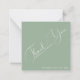 Dé las gracias en un estilo atemporal con nuestra Minimalista Sage Green Script Personalizado Gracias Tarjeta de nota. La parte frontal incluye una elegante caligrafía "Gracias" con sus nombres y fecha de boda, mientras que la parte posterior le permite añadir un mensaje personal. Un audaz guion blanco aparece en un suave fondo verde, perfecto para parejas que aman diseños mínimos y libres de alboroto. Personalizar cada detalle en minutos. ¡Una manera elegante de compartir gratitud después de tu gran día!